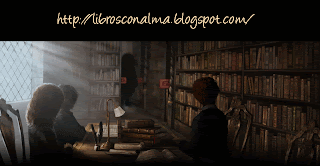 Biblioteca y Hagrid al fondo, donde busca información sobre los dragones